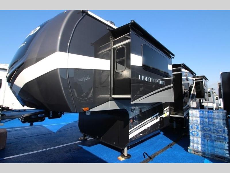 With any North Point fifth wheel by Jayco you begin with a strong foundation with a custom frame, designed and sized specifically to best support each unit. Constructed with Stronghold VBL™ aluminum framed, vacuum bond laminated walls and the Magnum Truss™ XL6™ roof system with an Alpha roof membrane system, which is the strongest tested roof in the industry. The 5-Star Handling package is included with Uniroyal tires, a MORryde rubber pin box, Dexter axles with Nev-R-Adjust brakes, MORryde CRE-3000 rubberized suspension and wet bolt fasteners and bronze bushings. The interior has handcrafted hardwood glazed doors and drawers, vinyl flooring throughout, an integrated under-mount sink in the main bathroom, plus so much more you just have to see one to believe it all!