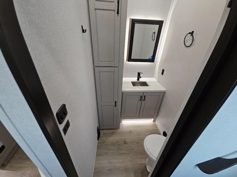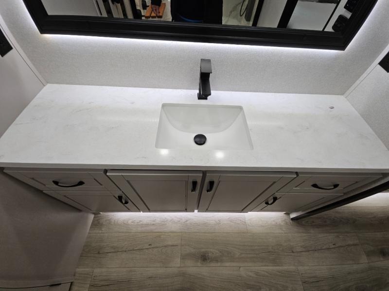 With any North Point fifth wheel by Jayco you begin with a strong foundation with a custom frame, designed and sized specifically to best support each unit. Constructed with Stronghold VBL™ aluminum framed, vacuum bond laminated walls and the Magnum Truss™ XL6™ roof system with an Alpha roof membrane system, which is the strongest tested roof in the industry. The 5-Star Handling package is included with Uniroyal tires, a MORryde rubber pin box, Dexter axles with Nev-R-Adjust brakes, MORryde CRE-3000 rubberized suspension and wet bolt fasteners and bronze bushings. The interior has handcrafted hardwood glazed doors and drawers, vinyl flooring throughout, an integrated under-mount sink in the main bathroom, plus so much more you just have to see one to believe it all!