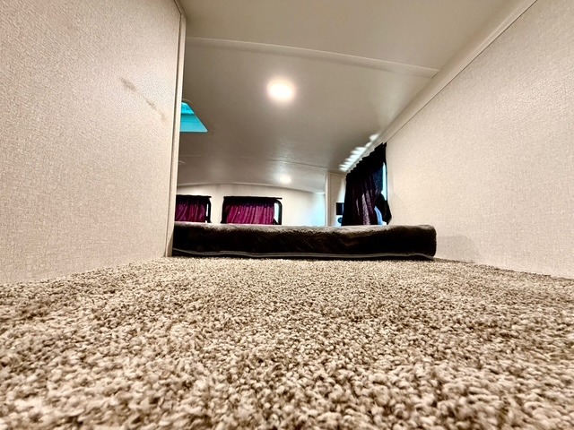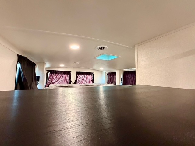 With two bedrooms plus a loft, the 390CKDS offers one of the most versatile and spacious floorplans in the Jayco North Point lineup, allowing large families or groups to travel in comfort. Up front, the private master suite features a king bed, dual wardrobes, and direct access to a full bathroom with dual sinks and a spacious shower. Toward the rear, a second bedroom includes a queen bed and its own adjacent bathroom, which also features a convenient exterior entry door for easy access to the outdoors. The loft above the main living area provides three additional bed mats, perfect for kids or extra guests, creating multiple sleeping options without taking away from main living space.