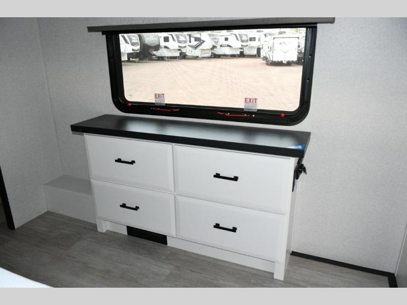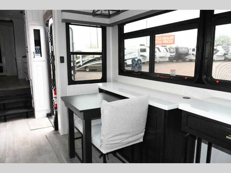 Dining Area – Dinette slide provides a spacious dining area for meals or game nights, complete with chairs and additional storage above.