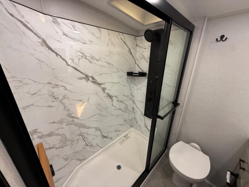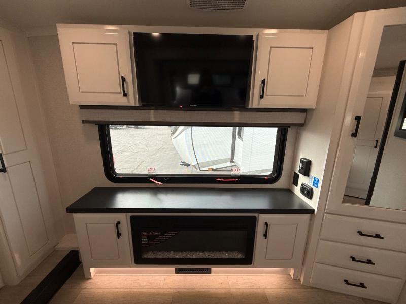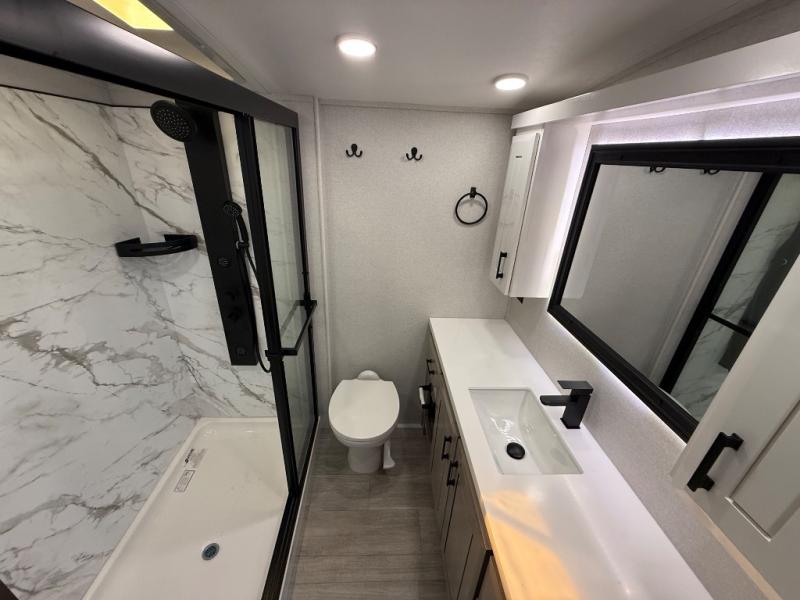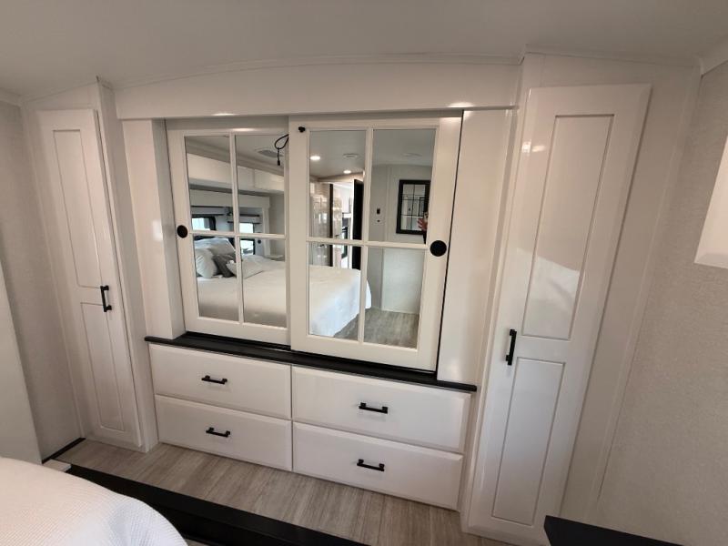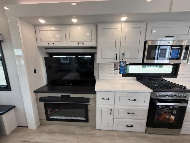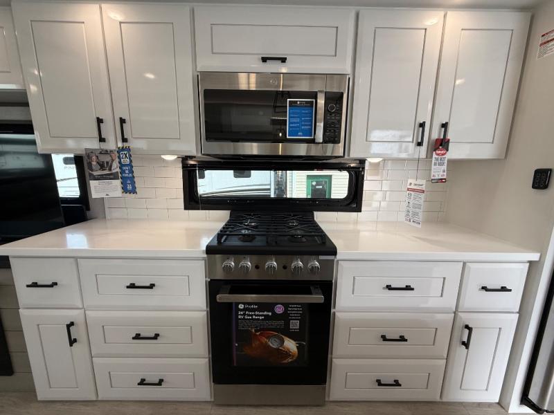 Step inside and experience the Jayco difference. From handcrafted solid hardwood maple cabinetry to sleek solid-surface countertops, every detail reflects intentional design and superior build quality. GE’s premium kitchen suite includes a 21 cu. ft. residential refrigerator, a 30 in. convection microwave with built-in air fryer, and a 24 in. high-output range—along with an available built-in dishwasher and extended bar top for effortless entertaining.