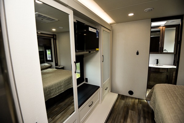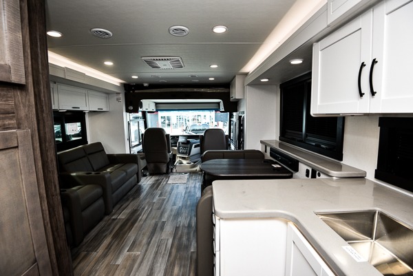 The Jayco Precept Class A gas motorhome comes with some features that you'll only find on a Jayco product, like the JRide Plus which offers you a powerful blend of precise handling and renowned stability on the road and the Firefly total coach control system which allows you to control your coach's operations from just about anywhere with your phone. You'll find two-point lap seatbelts in all designated seating locations, and the one-piece, seamless fiberglass front and rear caps resist wear and tear over the years. The Precept also offers you the lightest yet strongest construction in the industry with the Stronghold VBL lamination on the roof, floor, and sidewalls. You'll also be very pleased to find a 120" panoramic windshield, automatic hydraulic leveling jacks, and a 5,500W generator with auto-gen start.