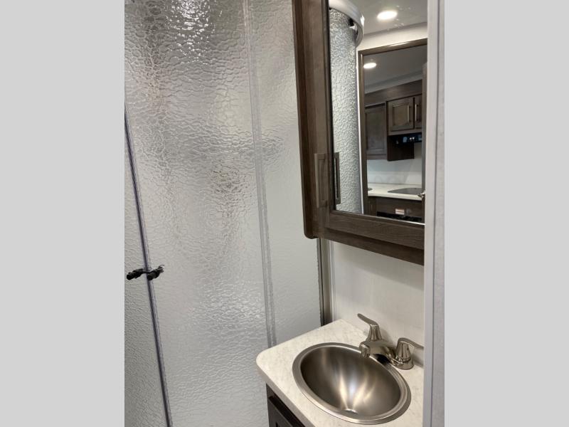 Each Jayco Redhawk Class C gas motorhome includes the JRIDE® system that features a computer-balanced driveshaft, standard front and rear stabilizer bars, Hellwig helper springs, and rubber isolation body mounts to absorb road shock, dampen noise and minimize vibrations. The cab offers a Sony® infotainment center with Apple CarPlay and Android Auto, backup and side-view cameras for safety and easier parking, and a tire pressure monitoring system. Inside you will love the headroom with a 7-foot ceiling height, the LED-lit pressed countertops and decorative kitchen backsplash, plus the stainless steel bathroom sink when it is time to clean up. Looking for value, technology and comfort, choose your favorite Redhawk today!
