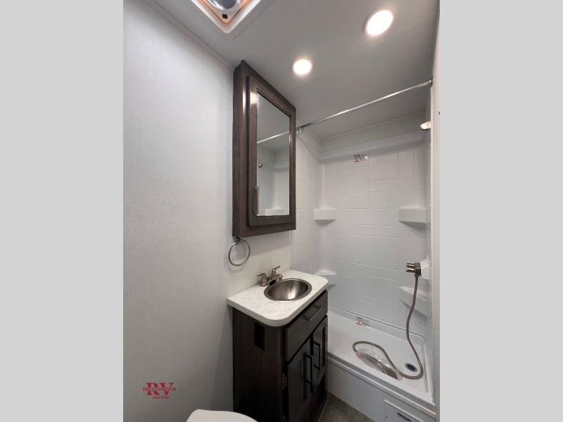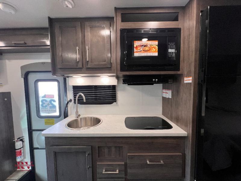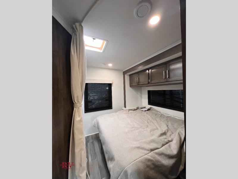 There's a comfortable place to sleep for everyone in this motorhome! From the corner 60" x 70" queen bed that slides out to the bunk over cab, and even the 42" x 70" booth dinette once converted. You can store your favorite snacks and hang up your clothes in the wardrobe/pantry. The chef can prepare delicious meals with the two burner cooktop and if there happens to be any leftovers then they can be stored in the 10 cu. ft. 12V refrigerator. The rear corner bathroom has a 24" x 36" shower that you are sure to enjoy after a long day of traveling!
