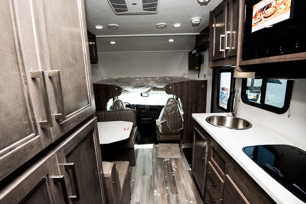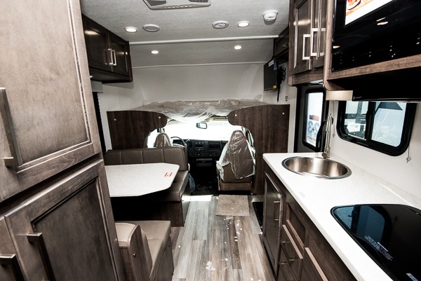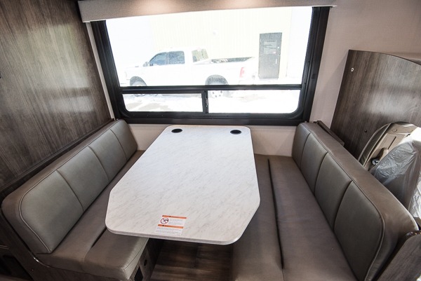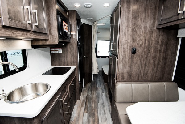There's a comfortable place to sleep for everyone in this motorhome! From the corner 60" x 70" queen bed that slides out to the bunk over cab, and even the 42" x 70" booth dinette once converted. You can store your favorite snacks and hang up your clothes in the wardrobe/pantry. The chef can prepare delicious meals with the two burner cooktop and if there happens to be any leftovers then they can be stored in the 10 cu. ft. 12V refrigerator. The rear corner bathroom has a 24" x 36" shower that you are sure to enjoy after a long day of traveling!
