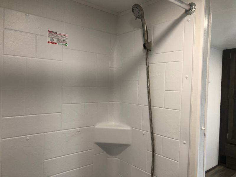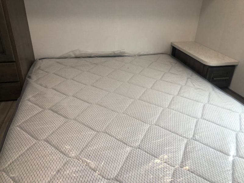 As you step inside, you’re greeted by a cozy cab-over bunk, perfect for accommodating an extra guest in comfort. The slide-out provides ample living space and houses a 42" x 74" U-dinette, ideal for enjoying meals, playing board games, or simply gathering with friends and family. Also, in the slide-out is a 60" jack-knife sofa, offering a comfortable place to relax, and both the dinette and sofa can easily convert into additional sleeping space if needed. Across from the living area, the well-equipped kitchen includes a stainless-steel sink, a convection microwave oven, a two-burner cooktop with flush cover, and a 10-cu. ft. refrigerator, giving you everything you need to cook with ease while on the road. The bathroom provides a 24" x 36" shower and a foot-flush toilet for added convenience. At the rear, the private bedroom offers a 60" x 74" queen bed for restful sleep, along with a wardrobe and overhead cabinets to keep your clothing and essentials neatly organized.