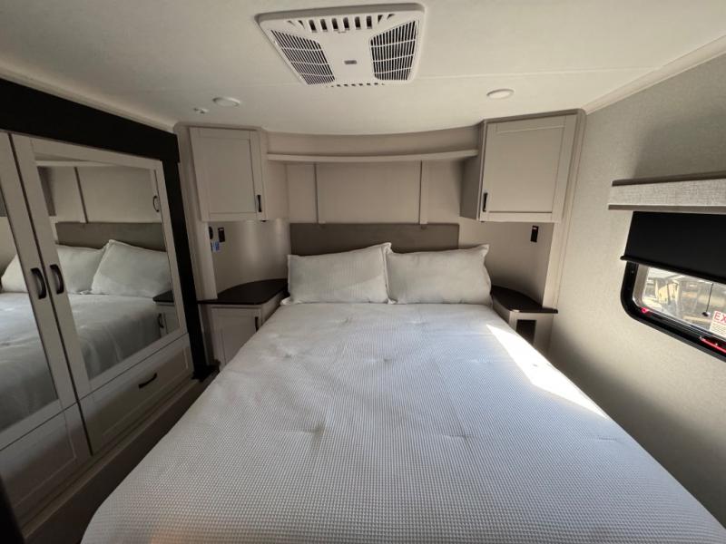One look at the Seismic toy haulers by Jayco, and you'll never go back! Each model features a custom automotive-grade vinyl exterior graphics package, a painted fiberglass front cap with built-in LED lighting, and 102" wide-body structural steel I-beam construction. You'll find the pass-through storage with Slam-Latch baggage doors will make unpacking easier than ever, and the rear ramp door/patio with anti-slip, non-skid flooring will allow you to unload your toys with no trouble at all. These toy haulers feature a three seasons garage wall/doors, a 30 gallon fuel tank with a timer, and exterior marine-grade speakers to keep the party going. The Climate Shield zero degree tested weather protection includes a 35,000 BTU furnace, PEX plumbing, and a fully enclosed and heated underbelly so you can enjoy your adventures year around. And we haven't even touched on the interior luxuries you'll find, like solid hardwood cabinet doors, residential vinyl flooring made in the USA, night shades, and more!