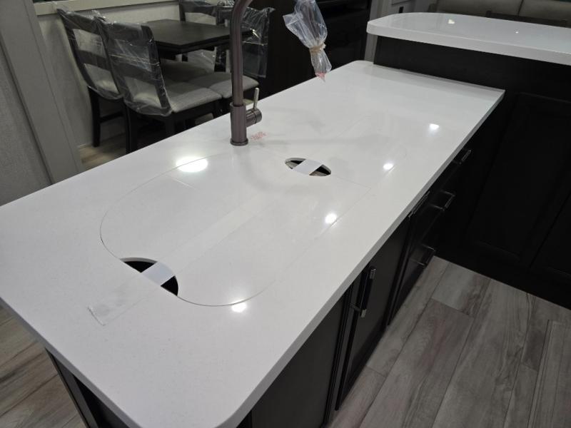 With any Keystone luxury Alpine Avalanche Edition fifth wheel, you will experience wide-body construction that allows you to stretch out and stay awhile during any season thanks to the Polar Pack All Season Protection that includes a heated and enclosed underbelly, an Astro foil reflective layer on the roof, front and rear walls, and two static attic vents, plus more! The interior offers hardwood slide out fascia with wood accents, designer upholstered window valances with custom wood window frame, plus your choice of modern interior design. There are many more Keystone exclusives, like the Tru-Fit slide construction, the in-floor heating ducts, KeyTV™, and much more to bring you a full-packed, luxury fifth wheel!