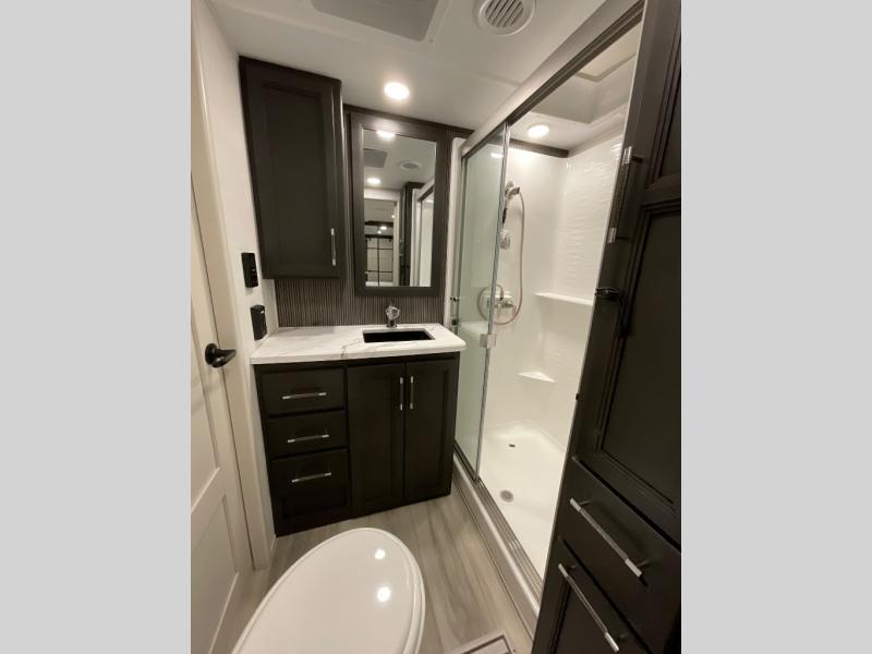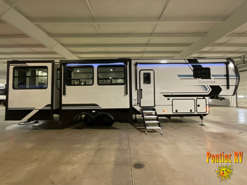 With any Keystone luxury Alpine Avalanche Edition fifth wheel, you will experience wide-body construction that allows you to stretch out and stay awhile during any season thanks to the Polar Pack All Season Protection that includes a heated and enclosed underbelly, an Astro foil reflective layer on the roof, front and rear walls, and two static attic vents, plus more! The interior offers hardwood slide out fascia with wood accents, designer upholstered window valances with custom wood window frame, plus your choice of modern interior design. There are many more Keystone exclusives, like the Tru-Fit slide construction, the in-floor heating ducts, KeyTV™, and much more to bring you a full-packed, luxury fifth wheel!