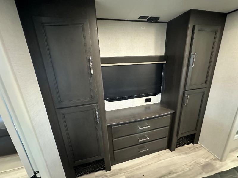 With any Keystone luxury Alpine Avalanche Edition fifth wheel, you will experience wide-body construction that allows you to stretch out and stay awhile during any season thanks to the Polar Pack All Season Protection that includes a heated and enclosed underbelly, an Astro foil reflective layer on the roof, front and rear walls, and two static attic vents, plus more! The interior offers hardwood slide out fascia with wood accents, designer upholstered window valances with custom wood window frame, plus your choice of modern interior design. There are many more Keystone exclusives, like the Tru-Fit slide construction, the in-floor heating ducts, KeyTV™, and much more to bring you a full-packed, luxury fifth wheel!