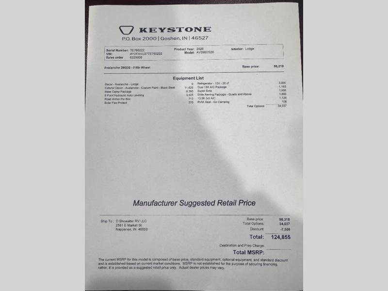 Keystone Alpine Avalanche Edition fifth wheel 390DS highlights: