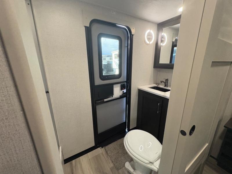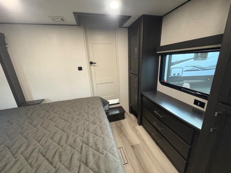 Get ready for family fun in this fifth wheel offering a front master bedroom with a king-size bed slide, plus a second master bedroom for your guests! The second bedroom includes a queen-size bed slide, a loft above the bedroom that sleeps three more, plus a rear full bathroom including a unique rear entry/exit door. And both entrances include the LCl SolidStep. The main living and kitchen area offers dual opposing slides and include theater seating, a free standing dinette, a fireplace, a center island and full kitchen amenities to feed your entire crew.