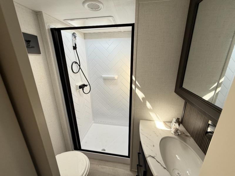 With any Arcadia Select fifth wheel by Keystone you will enjoy easy towability and at-home comforts at an affordable price! The laminated sidewalls with five sided aluminum superstructure will provide a strong foundation so you can enjoy your RV for years to come, plus a one-piece, heated and enclosed polypropylene underbelly means you can camp year around! And an upgraded Roto-Flex hitch pin will make it easy to tow. Head inside to find tall slides for added space, seamless, pressed countertops, convenient underbed storage, and a large shower with a retractable door and skylight. These fifth wheels also include a Blade Pure A/C system, Girard on-demand tankless water heater, two 30 lb. LP tanks, and more utilities to make your camping experience run smoothly.