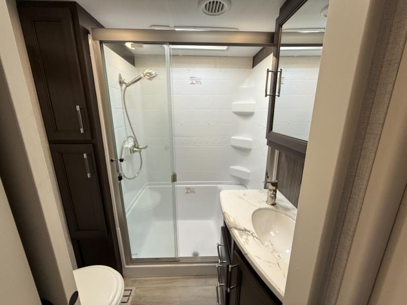 With any Arcadia Super Lite fifth wheel by Keystone, you will enjoy easy-to-tow lengths, unmatched storage, and oversized windows to let the outdoor views in. The structural I-beam frame will provide a strong foundation to your RV, and the Curt Performance Package means you can enjoy hassle-free towing. You will be able to camp year around thanks to the Peak Weather Package that includes a heated and enclosed underbelly, a 35K BTU furnace, and Keystone's exclusive HyperDeck floor that adds an additional layer of insulation to your floor. The interior will make you feel at home with residential hardware, seamless pressed countertops, black roller shades, and ample storage space. Sometimes the best things come in smaller packages; choose a Arcadia Super Lite today!