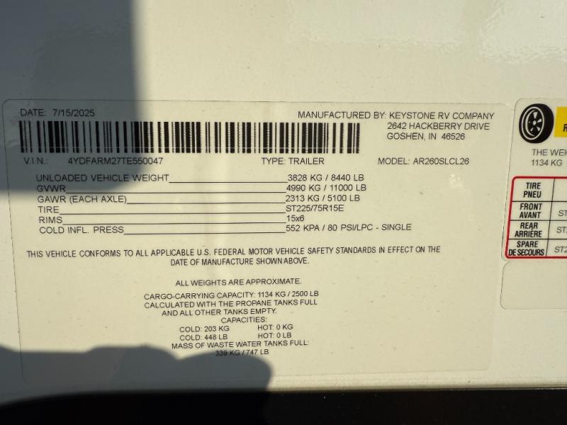 New 2026 Keystone RV Arcadia Super Lite 260SLCL Fifth Wheel
