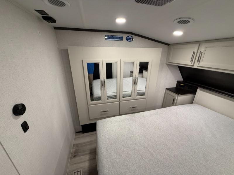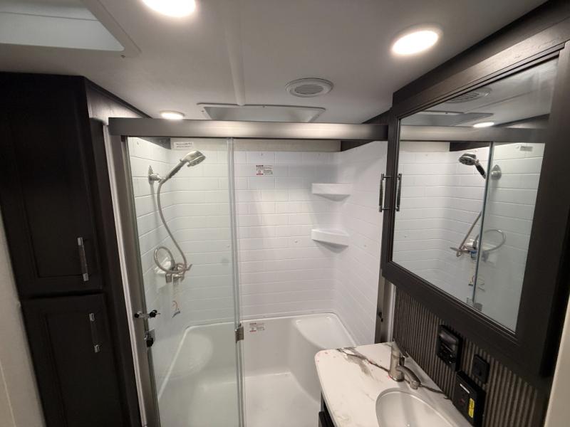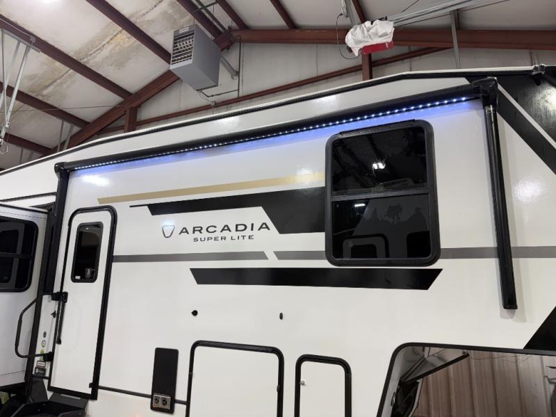 With any Arcadia Super Lite fifth wheel by Keystone, you will enjoy easy-to-tow lengths, unmatched storage, and plenty of windows to let the outdoor views in. The structural I-beam frame will provide a strong foundation to your RV, and the Full pass-through storage for all your equipment and camping gear. You will be able to camp in cold and hot climates thanks to the Peak Weather Package that includes a heated and enclosed underbelly, two Furrion A/C for cool temperatures in the summer, and Keystone's exclusive HyperDeck floor that adds an additional layer of insulation to your floor. The interior will make you feel at home with residential hardware, seamless pressed countertops, black roller shades, and ample storage space. Sometimes the best things come in smaller packages; choose a Arcadia Super Lite today!