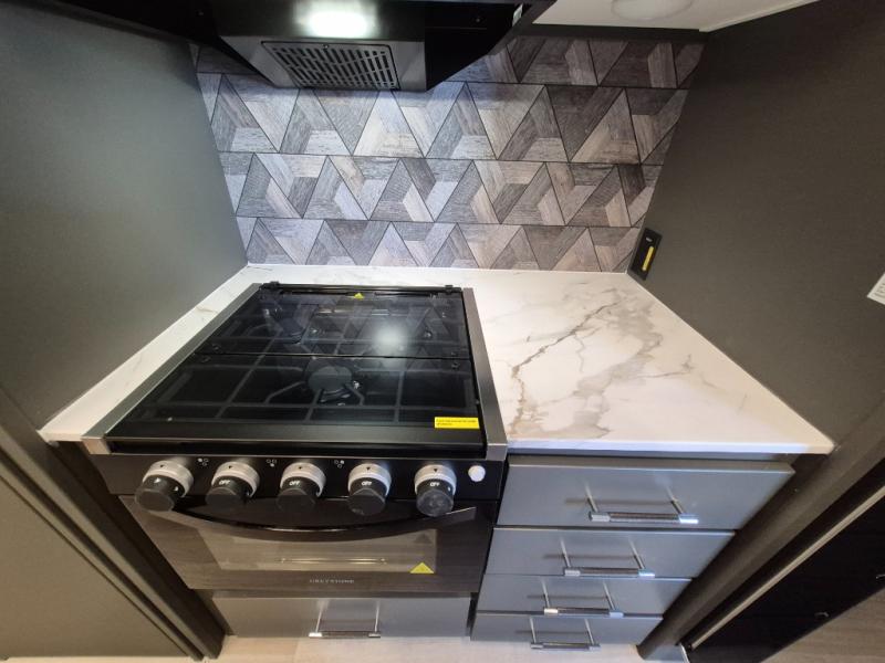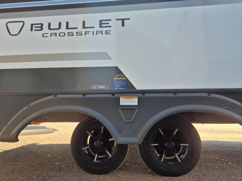 The Bullet Crossfire by Keystone are the perfect lightweight travel travel for rookie campers to seasoned RVers! Each one is built with a one-piece polypropylene underbelly, a fully walkable roof, and a high impact thermoset resin painted front cap for added durability. There is also a Dexter Torsion axle rubber ride suspension and Goodyear Endurance tires for a smooth tow plus a power tongue jack and power stabilizer jacks for easy set up. The interior will have you feeling right at home with deluxe night shades, updated Tranquil Timber decor, residential Beauflor vinyl flooring, and seamless kitchen countertops.