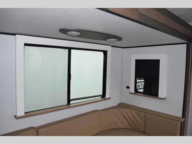 The Bullet Crossfire by Keystone are the perfect lightweight travel travel for rookie campers to seasoned RVers! Each one is built with a one-piece polypropylene underbelly, a fully walkable roof, and a high impact thermoset resin painted front cap for added durability. There is also a Dexter Torsion axle rubber ride suspension and Goodyear Endurance tires for a smooth tow plus a power tongue jack and power stabilizer jacks for easy set up. The interior will have you feeling right at home with deluxe night shades, updated Tranquil Timber decor, residential Beauflor vinyl flooring, and seamless kitchen countertops.