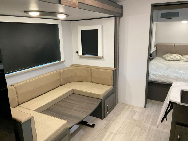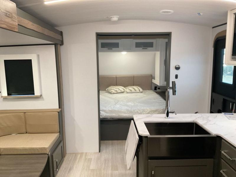The Bullet Crossfire by Keystone are the perfect lightweight travel travel for rookie campers to seasoned RVers! Each one is built with a one-piece polypropylene underbelly, a fully walkable roof, and a high impact thermoset resin painted front cap for added durability. There is also a Dexter Torsion axle rubber ride suspension and Goodyear Endurance tires for a smooth tow plus a power tongue jack and power stabilizer jacks for easy set up. The interior will have you feeling right at home with deluxe night shades, updated Tranquil Timber decor, residential Beauflor vinyl flooring, and seamless kitchen countertops.