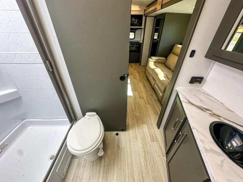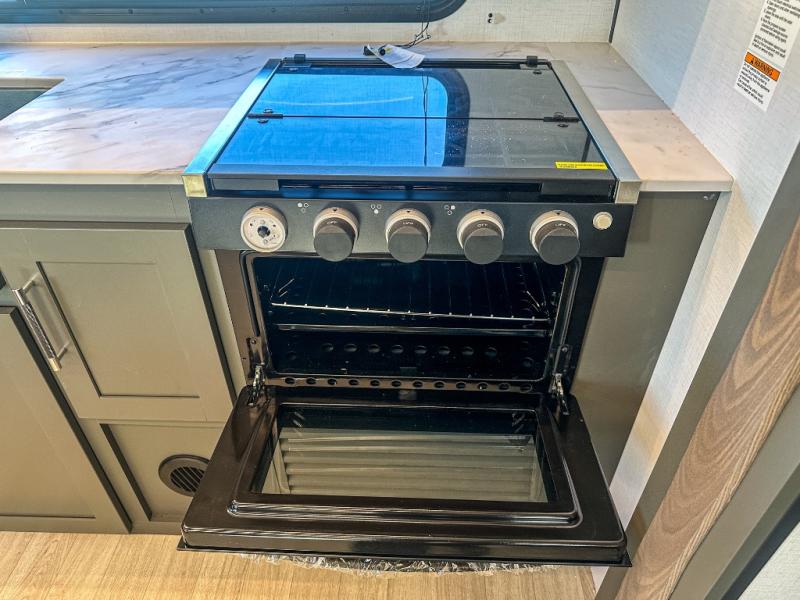The Bullet Crossfire by Keystone are the perfect lightweight travel travel for rookie campers to seasoned RVers! Each one is built with a one-piece polypropylene underbelly, a fully walkable roof, and a high impact thermoset resin painted front cap for added durability. There is also a Dexter Torsion axle rubber ride suspension and Goodyear Endurance tires for a smooth tow plus a power tongue jack and power stabilizer jacks for easy set up. The interior will have you feeling right at home with deluxe night shades, updated Tranquil Timber decor, residential Beauflor vinyl flooring, and seamless kitchen countertops.