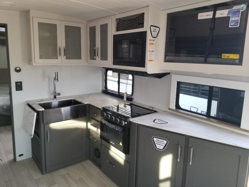 The Bullet Crossfire by Keystone are the perfect lightweight travel travel for rookie campers to seasoned RVers! Each one is built with a one-piece polypropylene underbelly, a fully walkable roof, and a high impact thermoset resin painted front cap for added durability. There is also a Dexter Torsion axle rubber ride suspension and Goodyear Endurance tires for a smooth tow plus a power tongue jack and power stabilizer jacks for easy set up. The interior will have you feeling right at home with deluxe night shades, updated Tranquil Timber decor, residential Beauflor vinyl flooring, and seamless kitchen countertops.