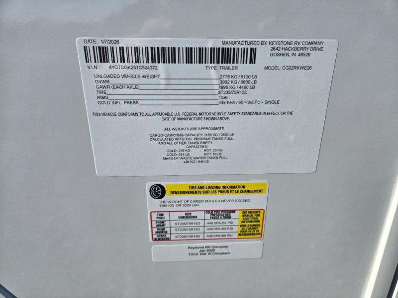 New 2026 Keystone RV Cougar 22RKWE Travel Trailer