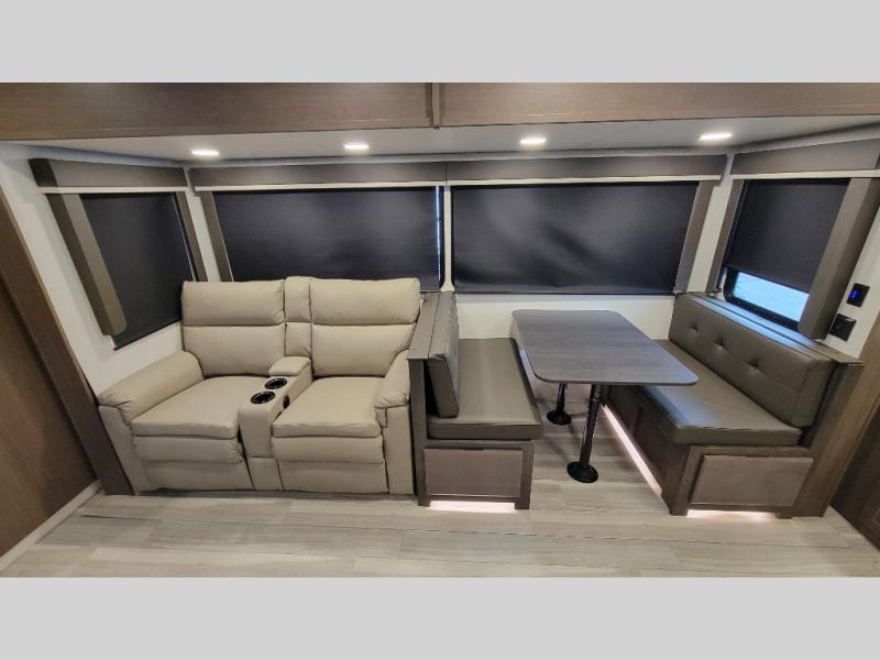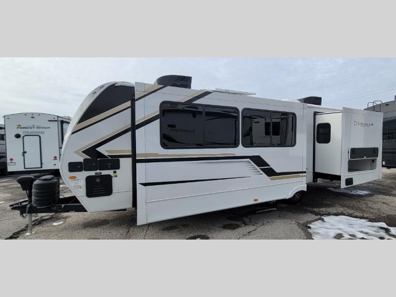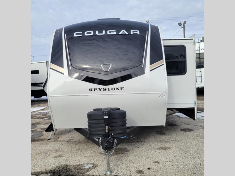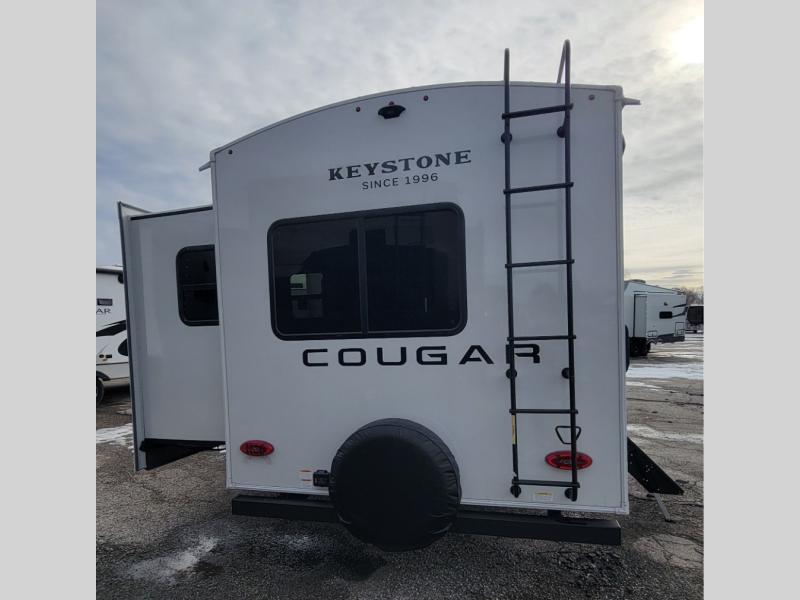 The Keystone Cougar Half-Ton fifth wheel and travel trailers are known as one of America's favorites for a reason! Some of those reasons are the exclusive features that come from Keystone, like the Winegard Air 360+ omni-directional rooftop antenna, the in-floor heating ducts, and the HyperCore composite wall construction with Vixen Fibrogloss high-gloss finish. The Cougar Half-Ton has a Climate Guard protection package with heat-deflecting white sidewalls, two roof attic vents, PEX plumbing and more to enjoy four season camping. Inside, you'll love the dimmable lighting, night roller shades throughout, shower skylight, and bedside USB outlets to keep your electronics charged.