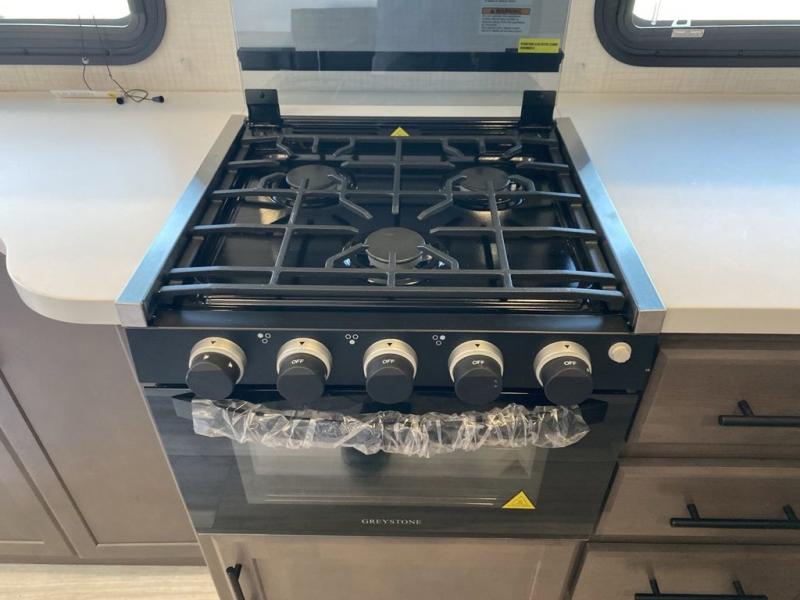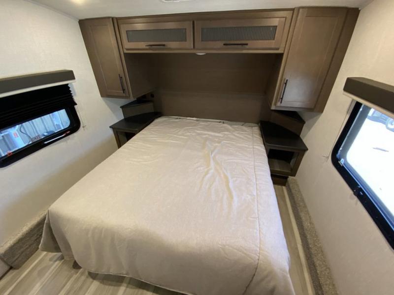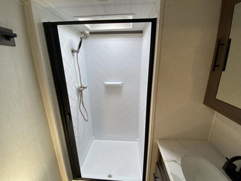 The Cougar Sport structural I-beam frame with stamped steel cross-members and outriggers, plus its AlphaPly roof membrane are what active RVers love about the construction of the Cougar line. The Cougar Sport models are no exception when it comes to a great package, as well as being smaller and lighter weight than their big brother Cougar models. A one-piece, heated and enclosed polypropylene underbelly will add protection against the elements, and the electric stabilizer jacks will provide more stability. On the inside, residential shaker style hardwood cabinet doors and decorative crown molding, plus seamless pressed countertops and an on-demand water heater will make your unit feel even more like home. You are also sure to appreciate the shiplap style decorative accent wall behind the bed, a porcelain foot flush toilet in the bathroom, plus residential kitchen hardware, and so much more.