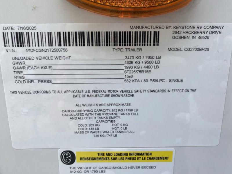 New 2026 Keystone RV Cougar 2700BH Fifth Wheel