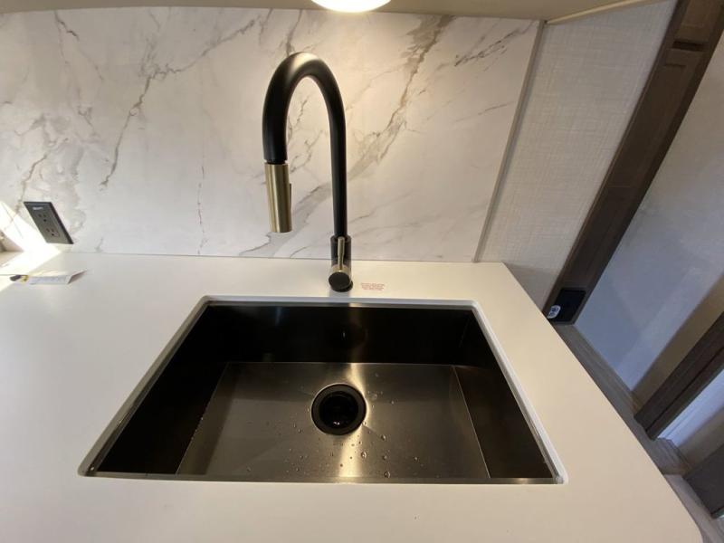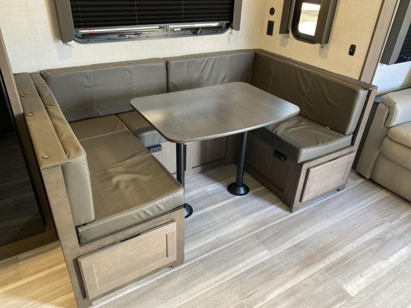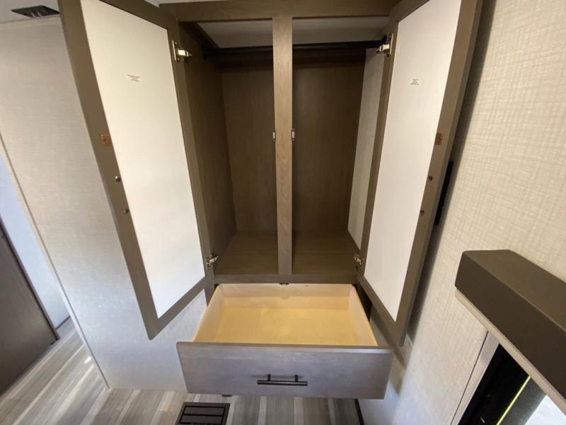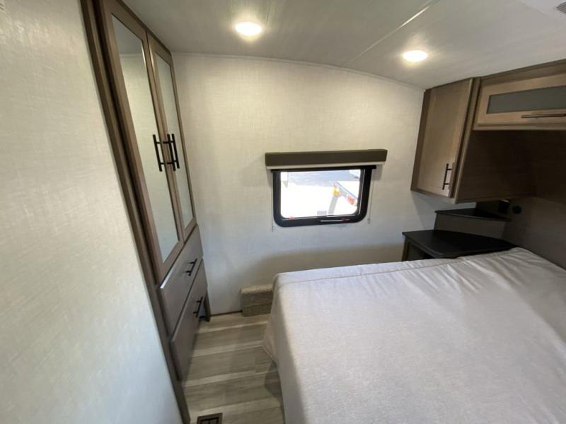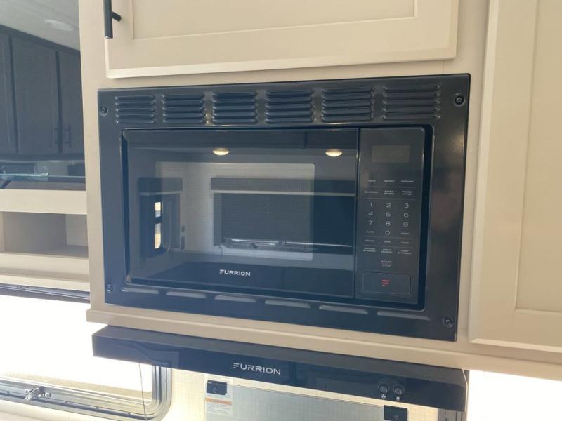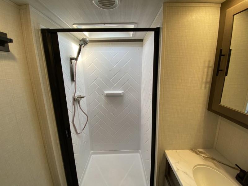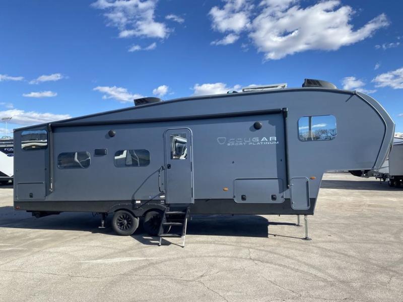 The Cougar Sport structural I-beam frame with stamped steel cross-members and outriggers, plus its AlphaPly roof membrane are what active RVers love about the construction of the Cougar line. The Cougar Sport models are no exception when it comes to a great package, as well as being smaller and lighter weight than their big brother Cougar models. A one-piece, heated and enclosed polypropylene underbelly will add protection against the elements, and the electric stabilizer jacks will provide more stability. On the inside, residential shaker style hardwood cabinet doors and decorative crown molding, plus seamless pressed countertops and an on-demand water heater will make your unit feel even more like home. You are also sure to appreciate the shiplap style decorative accent wall behind the bed, a porcelain foot flush toilet in the bathroom, plus residential kitchen hardware, and so much more.