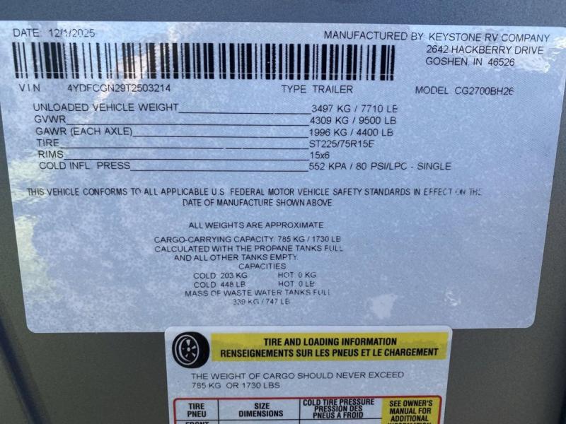 New 2026 Keystone RV Cougar 2700BH Fifth Wheel