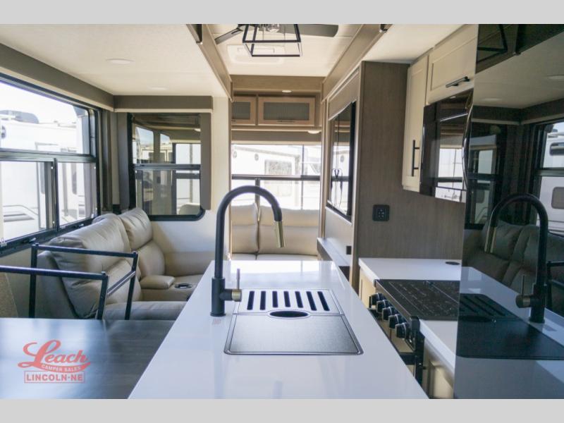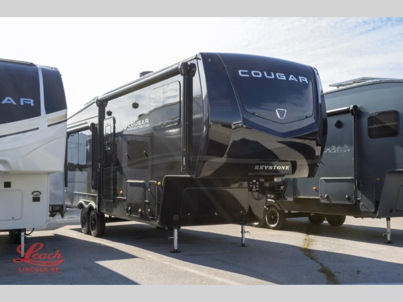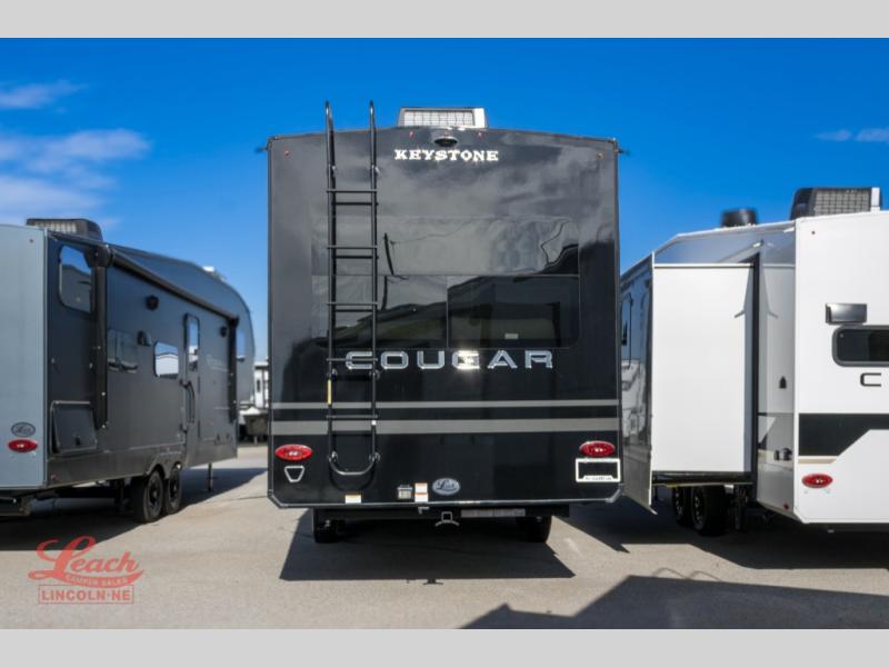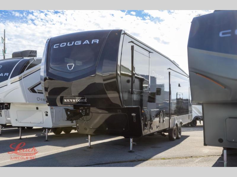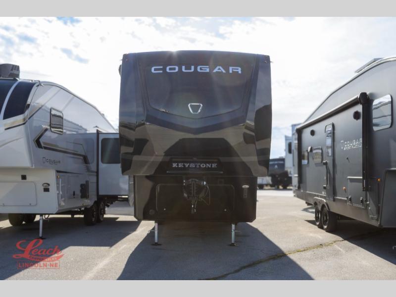 Spend more time having fun and less time worrying about your RV with the Keystone Cougar fifth wheel! These units have all that you will need for excellent vacations. The interior comes hardwood cabinet doors, solid surface kitchen countertops, an Oxygenics shower head and hose, plus a Vent-All window system. You will also appreciate the 12V charging stations throughout, the dual zone Bluetooth audio system, and the on-demand water heater for added comfort. The exterior is also fully outfitted with a convenience center, MaxTurn technology, Lippert axles with anti-lock braking system, and a Curt Road Armor shock absorbing equalizer for smooth towing. Each model is available with the optional Hero Edition. By choosing this edition, you can help support our nation's heros and their families by contributing to the Wounded Warrior Project. This optional package features an industry exclusive full-body paint matte finish, frameless windows, a glass entry door, blackout rims, and green LED exterior accent lighting; see dealer for more details!