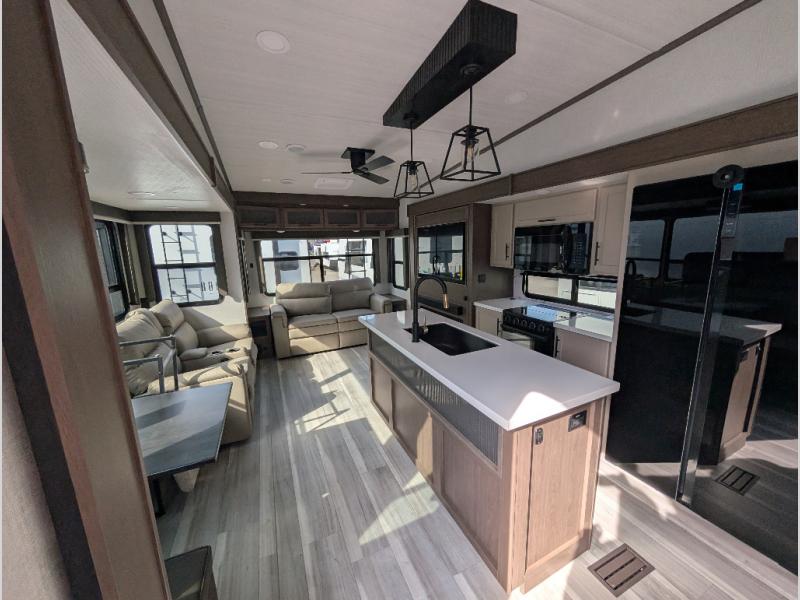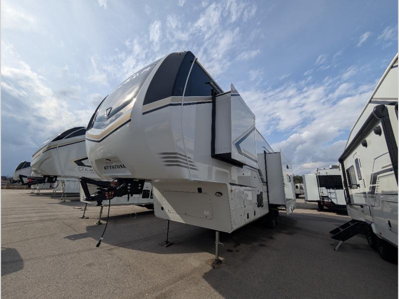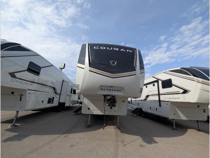 Spend more time having fun and less time worrying about your RV with the Keystone Cougar fifth wheel! These units have all that you will need for excellent vacations. The interior comes hardwood cabinet doors, solid surface kitchen countertops, an Oxygenics shower head and hose, plus a Vent-All window system. You will also appreciate the 12V charging stations throughout, the dual zone Bluetooth audio system, and the on-demand water heater for added comfort. The exterior is also fully outfitted with a convenience center, MaxTurn technology, Lippert axles with anti-lock braking system, and a Curt Road Armor shock absorbing equalizer for smooth towing. Each model is available with the optional Hero Edition. By choosing this edition, you can help support our nation's heros and their families by contributing to the Wounded Warrior Project. This optional package features an industry exclusive full-body paint matte finish, frameless windows, a glass entry door, blackout rims, and green LED exterior accent lighting; see dealer for more details!