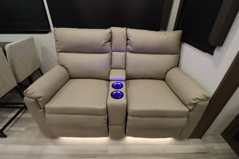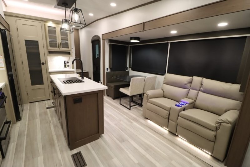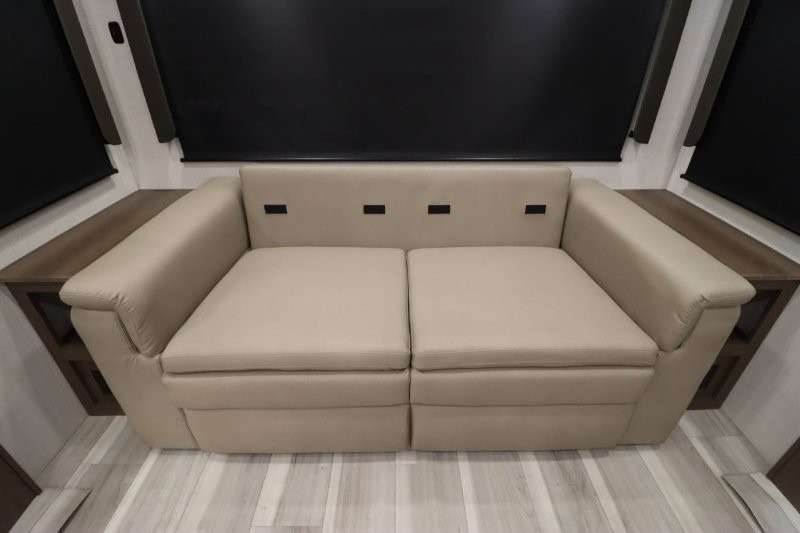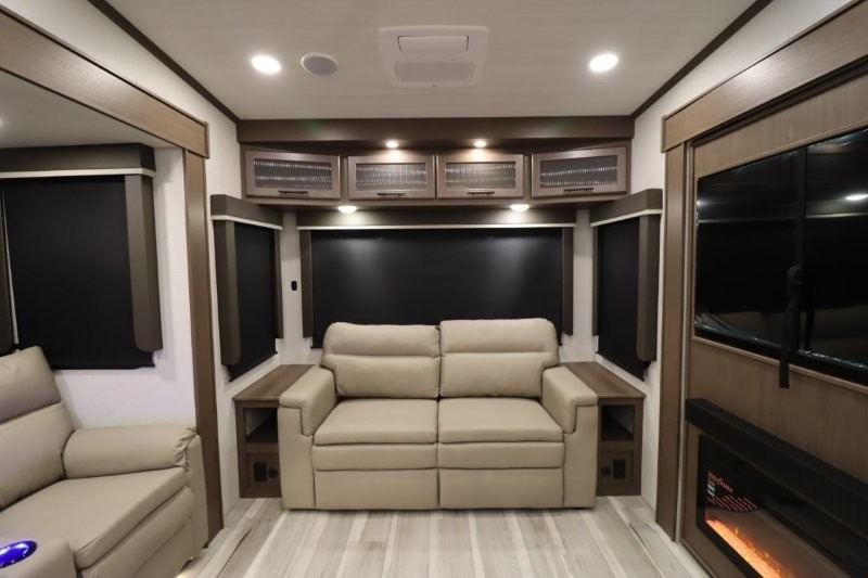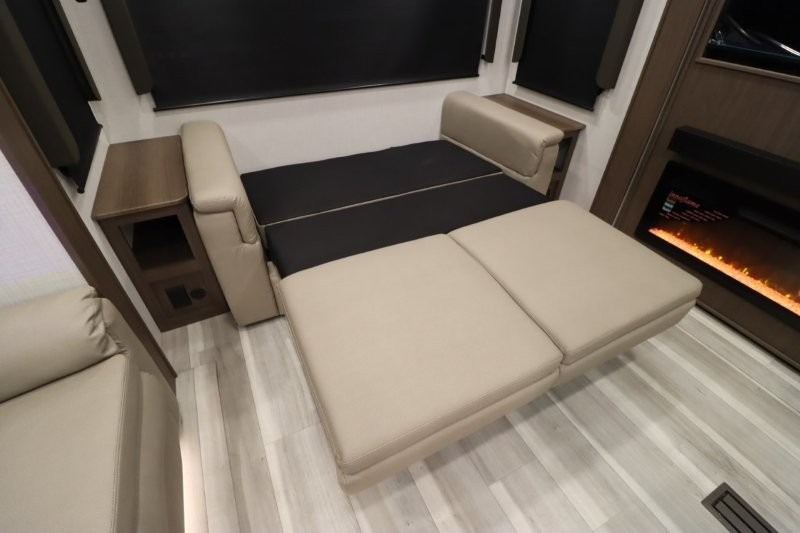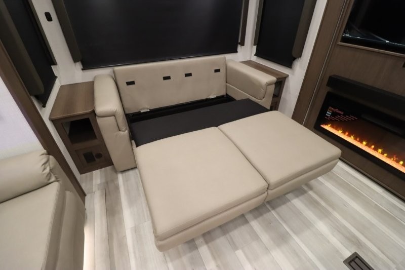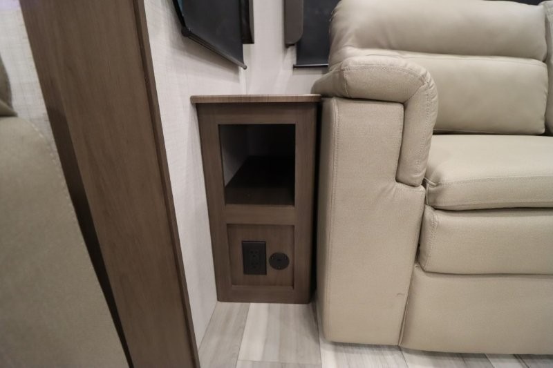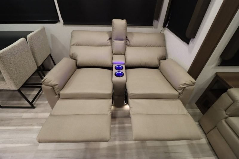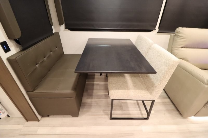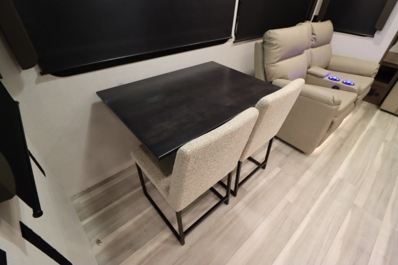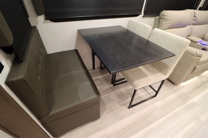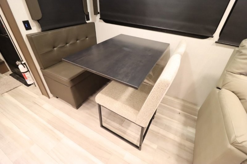 Solar Flex Protect, 4-point auto level, 2nd power awning, 2nd 15K A/C, Theatre Seating, Refrigerator - 12V - 10cf., Free Standing Dinette w/ Ottoman.