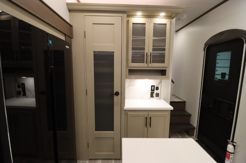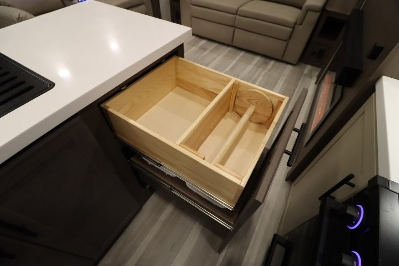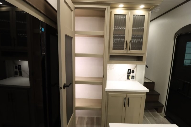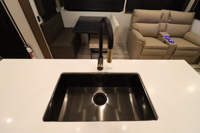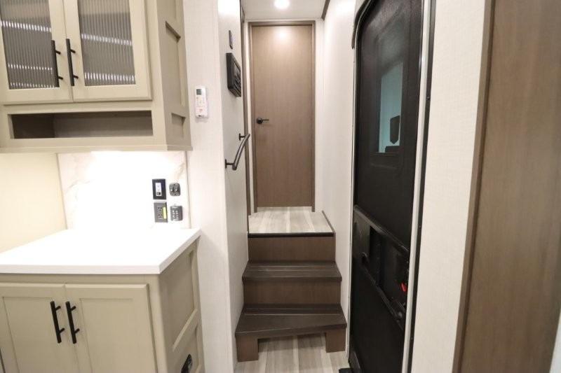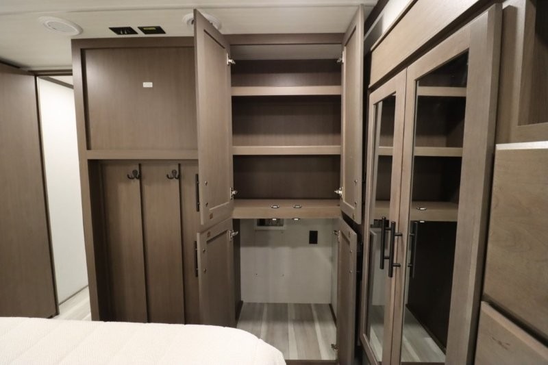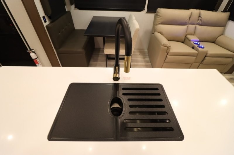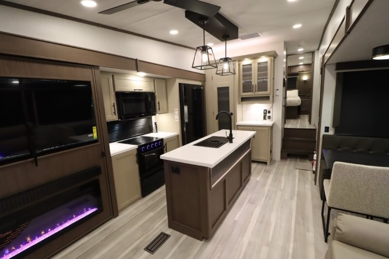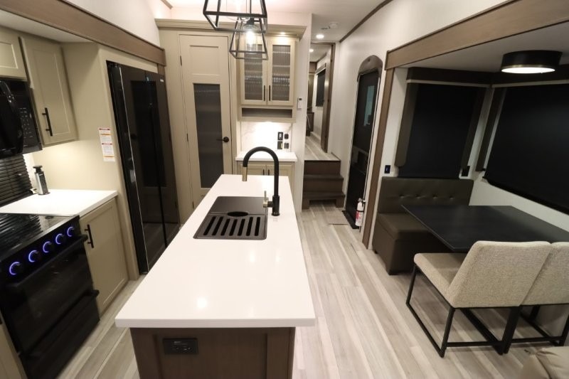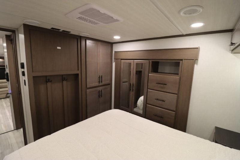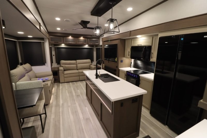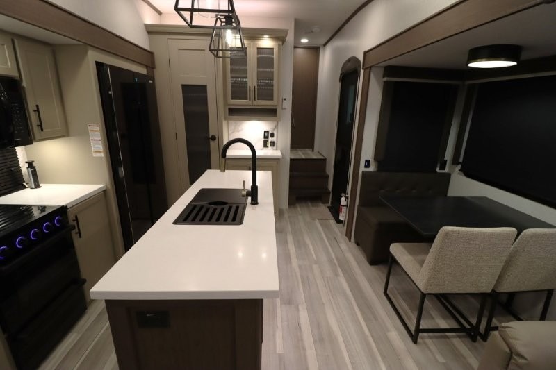 Solar Flex Protect, 4-point auto level, 2nd power awning, 2nd 15K A/C, Theatre Seating, Refrigerator - 12V - 10cf., Free Standing Dinette w/ Ottoman.