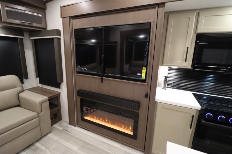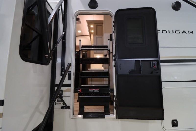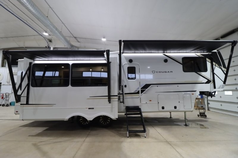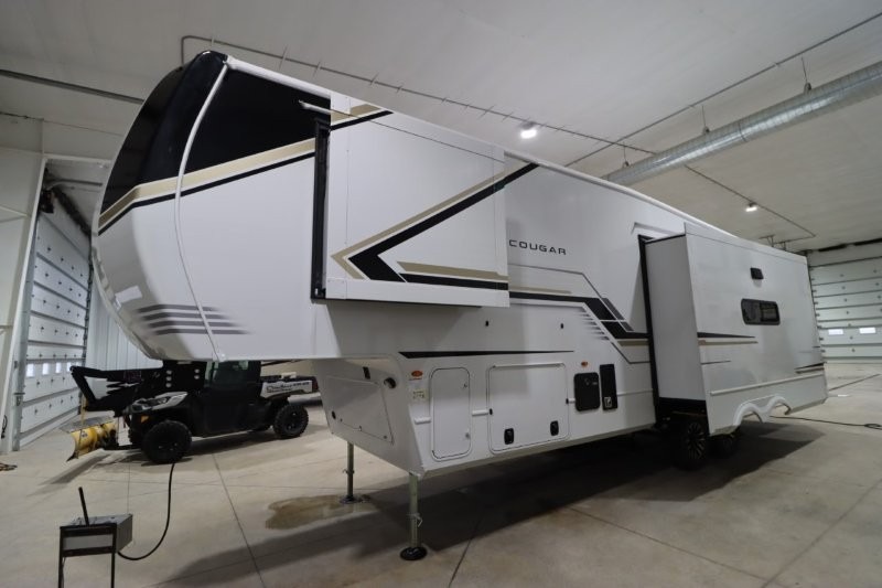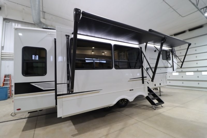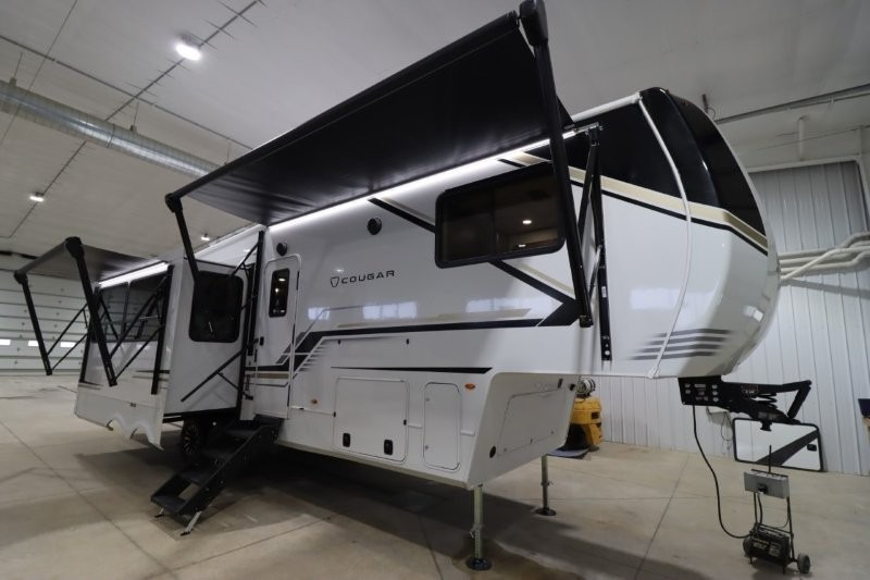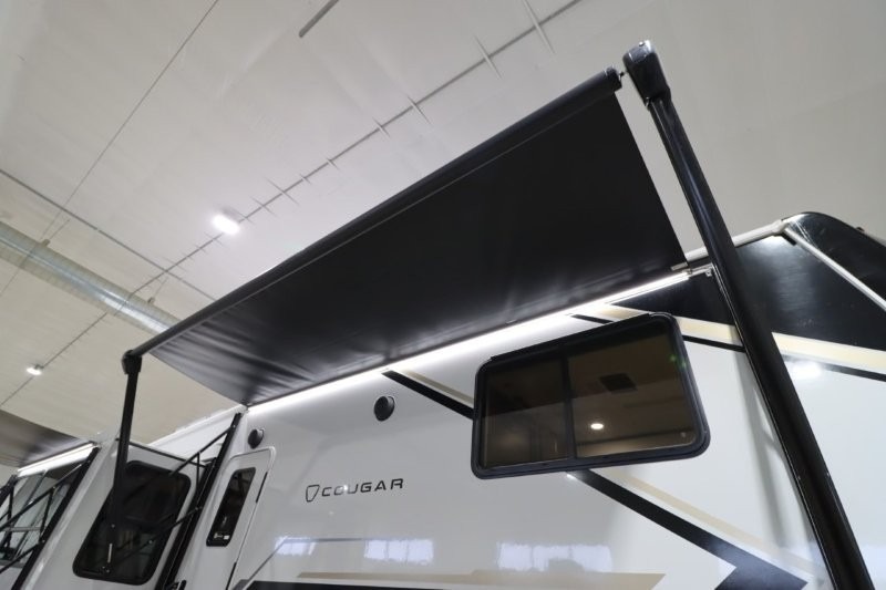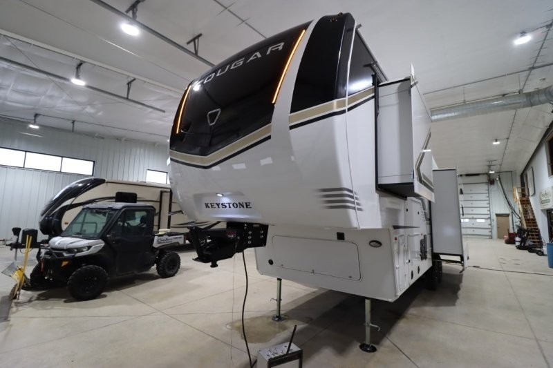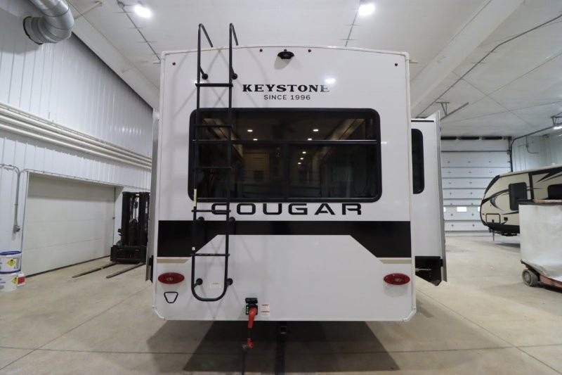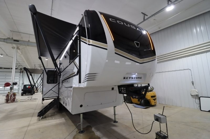 Spend more time having fun and less time worrying about your RV with the Keystone Cougar fifth wheel! These units have all that you will need for excellent vacations. The interior comes hardwood cabinet doors, solid surface kitchen countertops, an Oxygenics shower head and hose, plus a Vent-All window system. You will also appreciate the 12V charging stations throughout, the dual zone Bluetooth audio system, and the on-demand water heater for added comfort. The exterior is also fully outfitted with a convenience center, MaxTurn technology, Lippert axles with anti-lock braking system, and a Curt Road Armor shock absorbing equalizer for smooth towing. Each model is available with the optional Hero Edition. By choosing this edition, you can help support our nation's heros and their families by contributing to the Wounded Warrior Project. This optional package features an industry exclusive full-body paint matte finish, frameless windows, a glass entry door, blackout rims, and green LED exterior accent lighting; see dealer for more details!