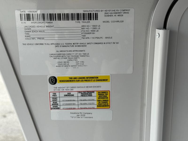 New 2026 Keystone RV Cougar 316RLS Fifth Wheel