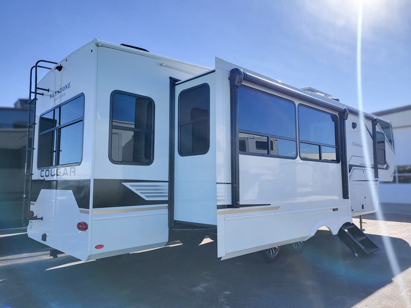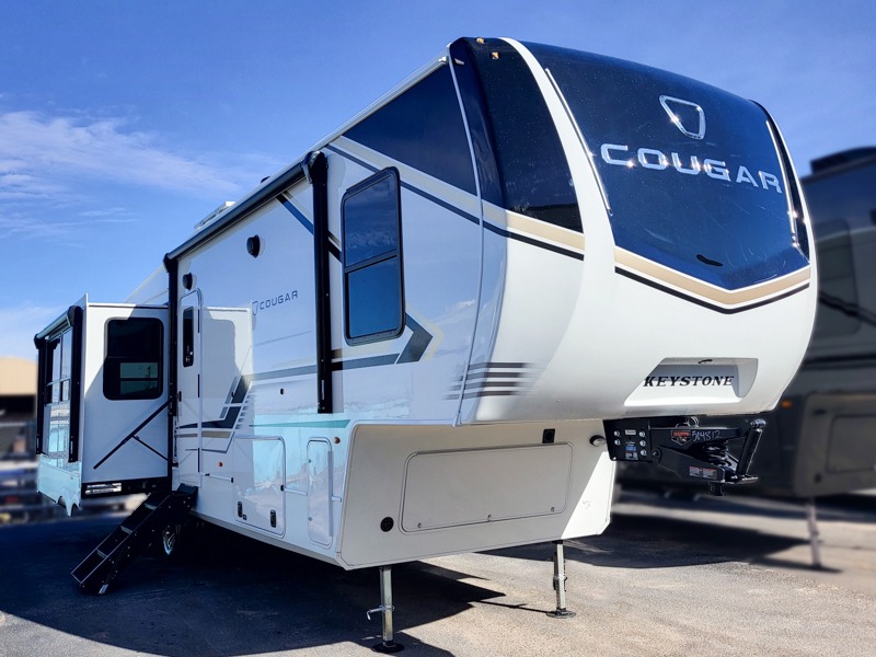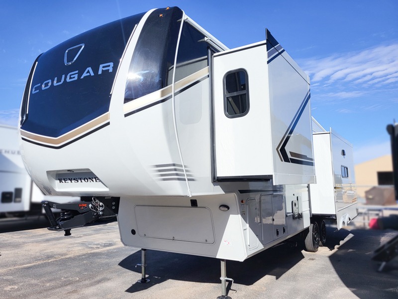 Spend more time having fun and less time worrying about your RV with the Keystone Cougar fifth wheel! These units have all that you will need for excellent vacations. The interior comes hardwood cabinet doors, solid surface kitchen countertops, an Oxygenics shower head and hose, plus a Vent-All window system. You will also appreciate the 12V charging stations throughout, the dual zone Bluetooth audio system, and the on-demand water heater for added comfort. The exterior is also fully outfitted with a convenience center, MaxTurn technology, Lippert axles with anti-lock braking system, and a Curt Road Armor shock absorbing equalizer for smooth towing. Each model is available with the optional Hero Edition. By choosing this edition, you can help support our nation's heros and their families by contributing to the Wounded Warrior Project. This optional package features an industry exclusive full-body paint matte finish, frameless windows, a glass entry door, blackout rims, and green LED exterior accent lighting; see dealer for more details!