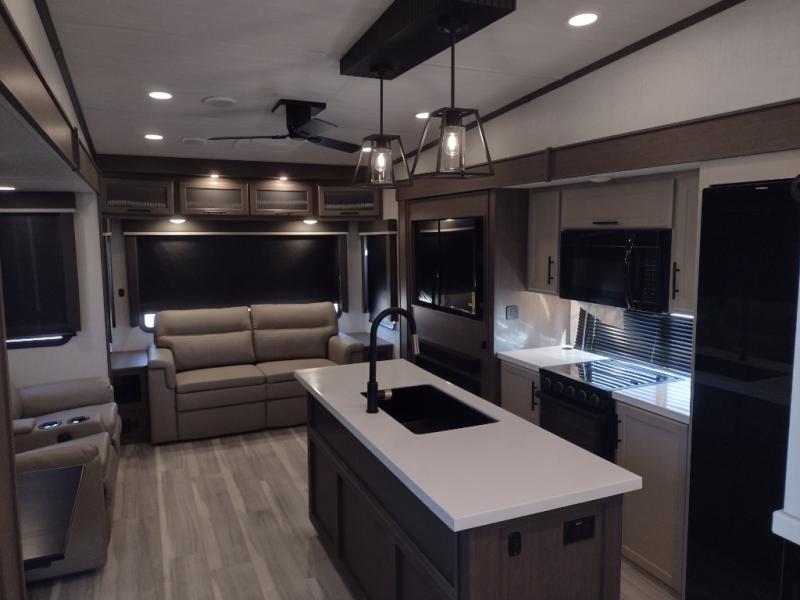 Spend more time having fun and less time worrying about your RV with the Keystone Cougar fifth wheel! These units have all that you will need for excellent vacations. The interior comes hardwood cabinet doors, solid surface kitchen countertops, an Oxygenics shower head and hose, plus a Vent-All window system. You will also appreciate the 12V charging stations throughout, the dual zone Bluetooth audio system, and the on-demand water heater for added comfort. The exterior is also fully outfitted with a convenience center, MaxTurn technology, Lippert axles with anti-lock braking system, and a Curt Road Armor shock absorbing equalizer for smooth towing. Each model is available with the optional Hero Edition. By choosing this edition, you can help support our nation's heros and their families by contributing to the Wounded Warrior Project. This optional package features an industry exclusive full-body paint matte finish, frameless windows, a glass entry door, blackout rims, and green LED exterior accent lighting; see dealer for more details!