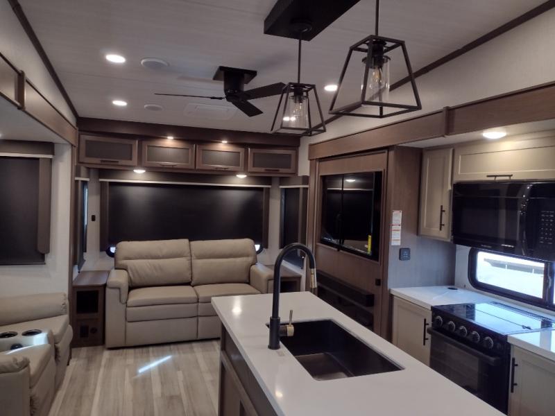 Spend more time having fun and less time worrying about your RV with the Keystone Cougar fifth wheel! These units have all that you will need for excellent vacations. The interior comes hardwood cabinet doors, solid surface kitchen countertops, an Oxygenics shower head and hose, plus a Vent-All window system. You will also appreciate the 12V charging stations throughout, the dual zone Bluetooth audio system, and the on-demand water heater for added comfort. The exterior is also fully outfitted with a convenience center, MaxTurn technology, Lippert axles with anti-lock braking system, and a Curt Road Armor shock absorbing equalizer for smooth towing. Each model is available with the optional Hero Edition. By choosing this edition, you can help support our nation's heros and their families by contributing to the Wounded Warrior Project. This optional package features an industry exclusive full-body paint matte finish, frameless windows, a glass entry door, blackout rims, and green LED exterior accent lighting; see dealer for more details!