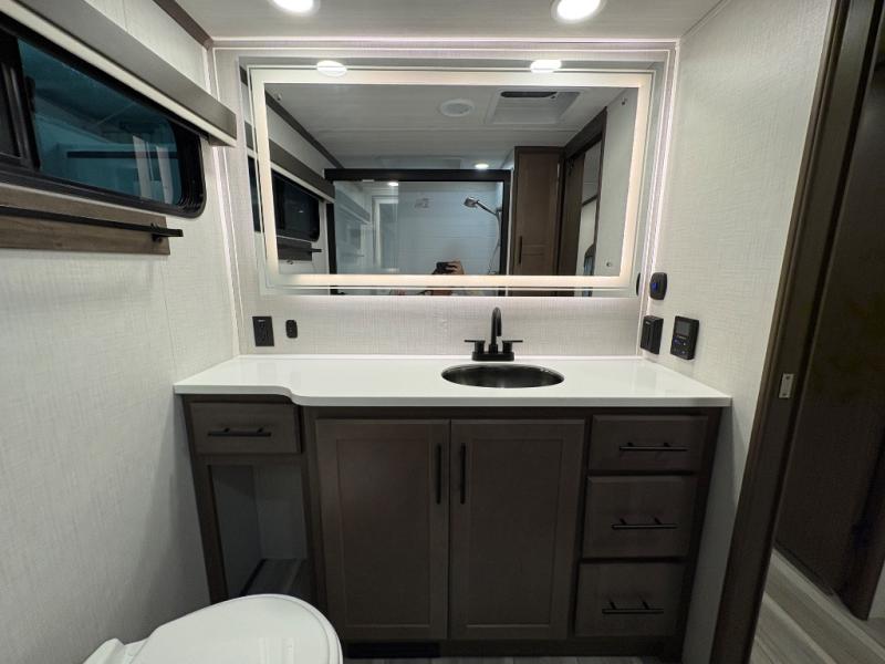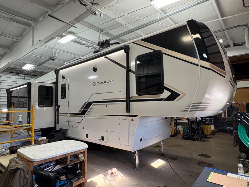 Spend more time having fun and less time worrying about your RV with the Keystone Cougar fifth wheel! These units have all that you will need for excellent vacations. The interior comes hardwood cabinet doors, solid surface kitchen countertops, an Oxygenics shower head and hose, plus a Vent-All window system. You will also appreciate the 12V charging stations throughout, the dual zone Bluetooth audio system, and the on-demand water heater for added comfort. The exterior is also fully outfitted with a convenience center, MaxTurn technology, Lippert axles with anti-lock braking system, and a Curt Road Armor shock absorbing equalizer for smooth towing. Each model is available with the optional Hero Edition. By choosing this edition, you can help support our nation's heros and their families by contributing to the Wounded Warrior Project. This optional package features an industry exclusive full-body paint matte finish, frameless windows, a glass entry door, blackout rims, and green LED exterior accent lighting; see dealer for more details!