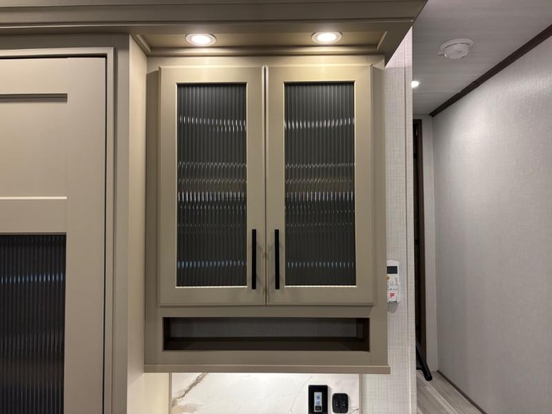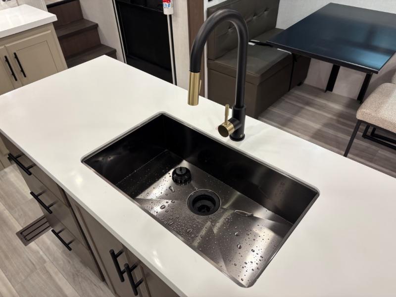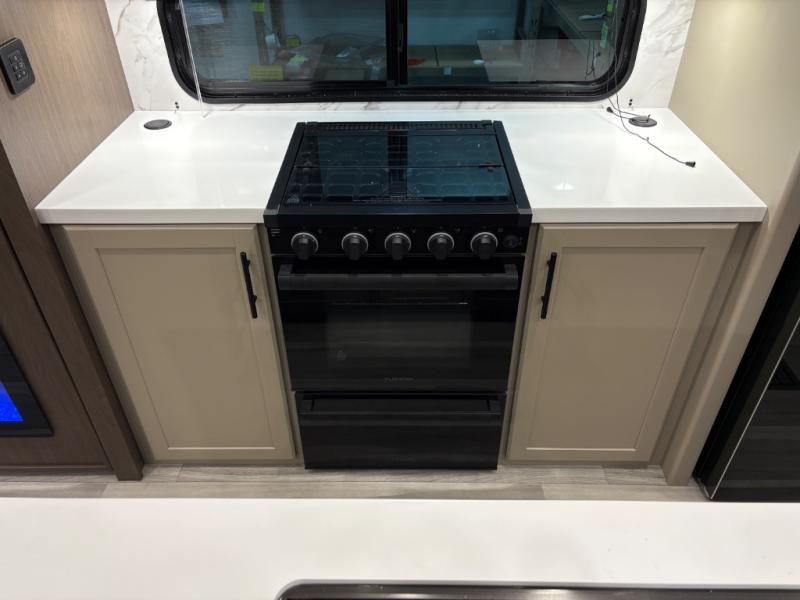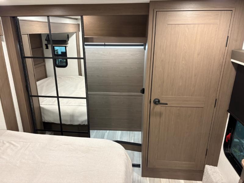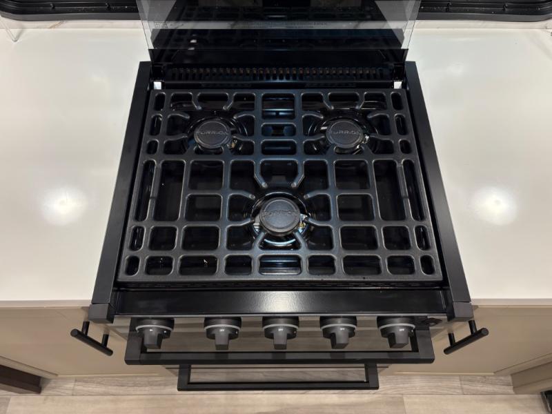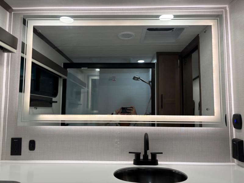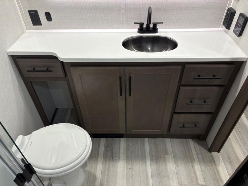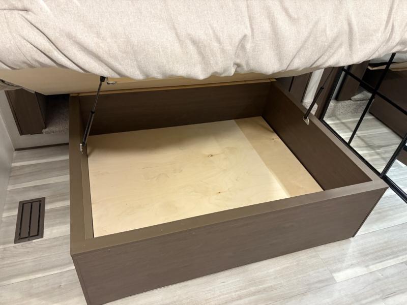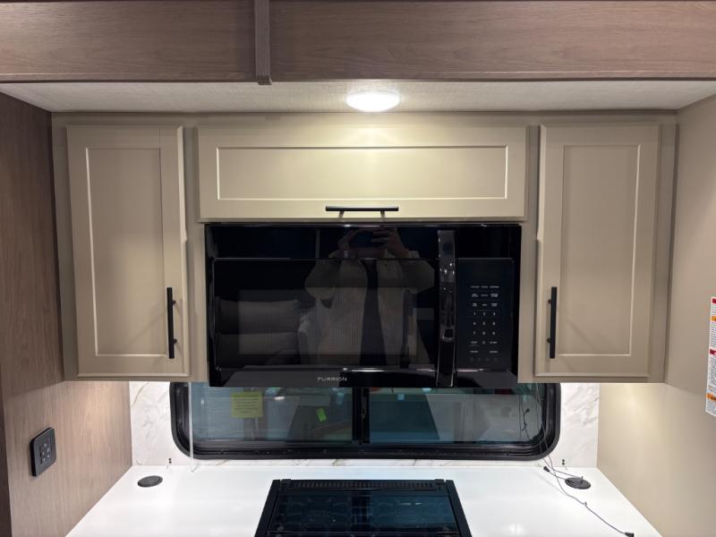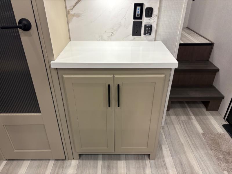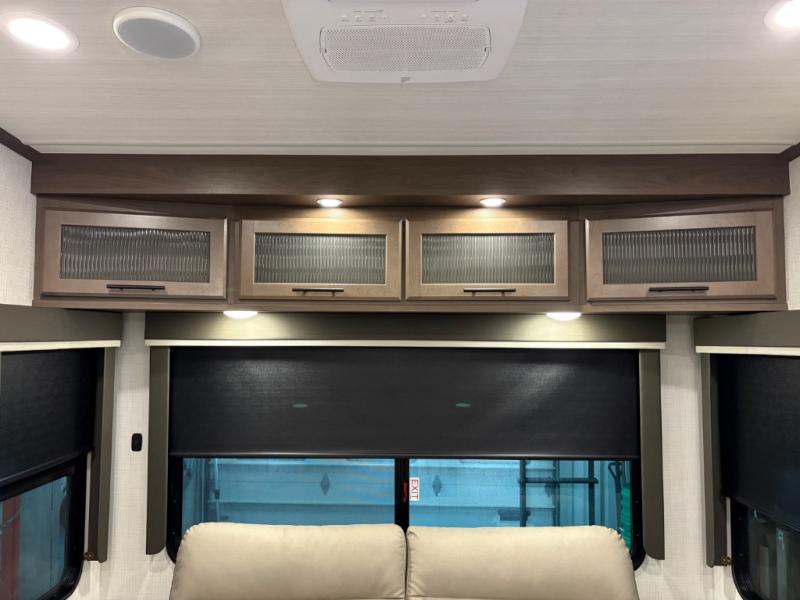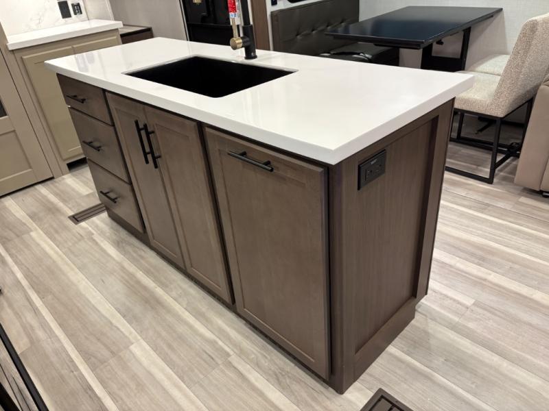 The dual opposing slides in the combined kitchen and living area will give you an open floorplan! You'll sleep on the queen-size bed in the front private bedroom, and there is under-bed storage, a full-height wardrobe, and a dresser with hidden storage for all of your personal belongings. As you spend time in the main living area, you'll appreciate having extra space thanks to the set of opposing slides, and the kitchen island will be easy to work around. You'll be able to relax on the tri-fold sleeper sofa and theater seating while you watch the LED HDTV with an pivoting entertainment door and hidden pantry. There is also a booth dinette with storage drawers, convenient shoe storage right as you enter the unit, and an exterior unobstructed pass-thru storage so nothing gets left behind.