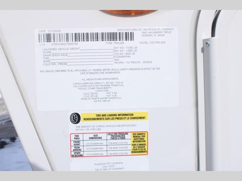 New 2026 Keystone RV Cougar 316RLS Fifth Wheel
