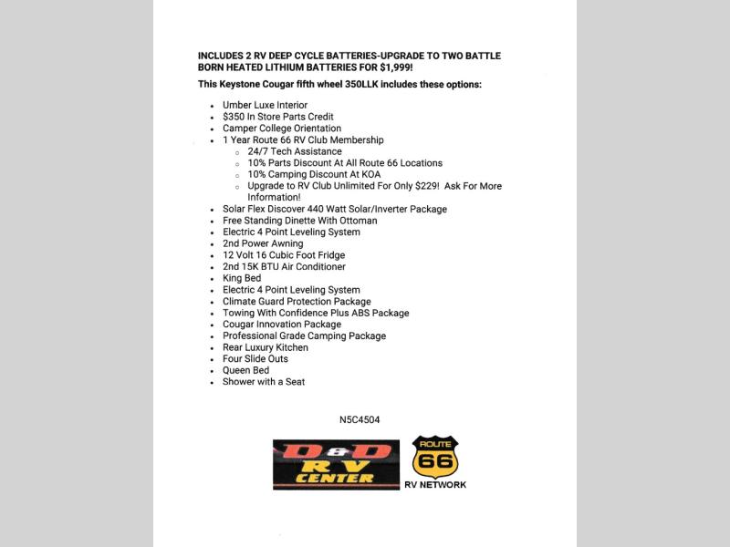 - FREE Route 66 RV Club UNLIMITED Upgrade! $229 VALUE!