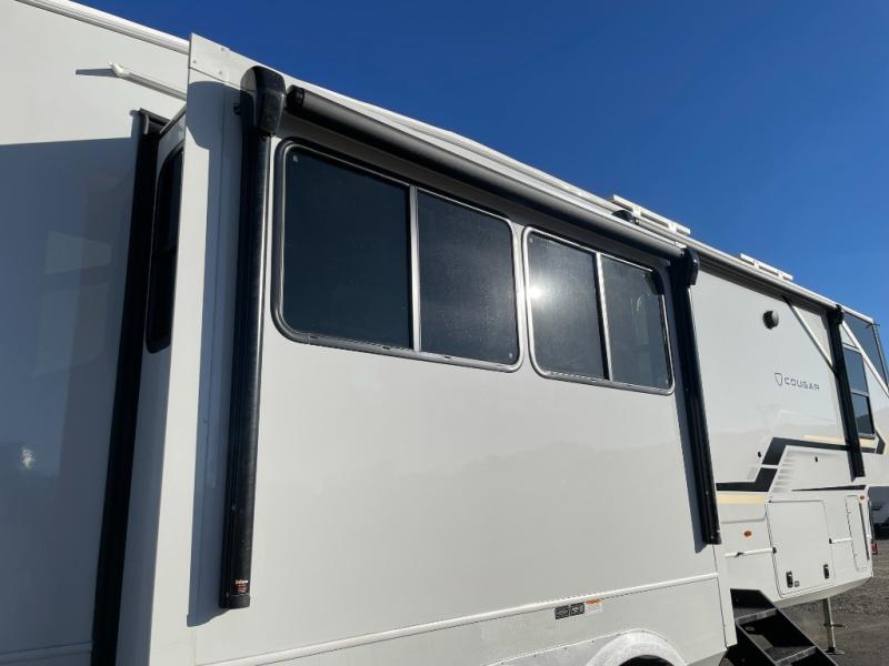 Spend more time having fun and less time worrying about your RV with the Keystone Cougar fifth wheel! These units have all that you will need for excellent vacations. The interior comes hardwood cabinet doors, solid surface kitchen countertops, an Oxygenics shower head and hose, plus a Vent-All window system. You will also appreciate the 12V charging stations throughout, the dual zone Bluetooth audio system, and the on-demand water heater for added comfort. The exterior is also fully outfitted with a convenience center, MaxTurn technology, Lippert axles with anti-lock braking system, and a Curt Road Armor shock absorbing equalizer for smooth towing. Each model is available with the optional Hero Edition. By choosing this edition, you can help support our nation's heros and their families by contributing to the Wounded Warrior Project. This optional package features an industry exclusive full-body paint matte finish, frameless windows, a glass entry door, blackout rims, and green LED exterior accent lighting; see dealer for more details!
