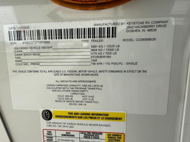 New 2026 Keystone RV Cougar 360MBI Fifth Wheel