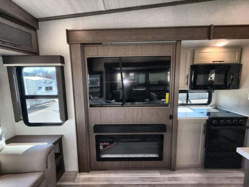 Spend more time having fun and less time worrying about your RV with the Keystone Cougar fifth wheel! These units have all that you will need for excellent vacations. The interior comes hardwood cabinet doors, solid surface kitchen countertops, an Oxygenics shower head and hose, plus a Vent-All window system. You will also appreciate the 12V charging stations throughout, the dual zone Bluetooth audio system, and the on-demand water heater for added comfort. The exterior is also fully outfitted with a convenience center, MaxTurn technology, Lippert axles with anti-lock braking system, and a Curt Road Armor shock absorbing equalizer for smooth towing. Each model is available with the optional Hero Edition. By choosing this edition, you can help support our nation's heros and their families by contributing to the Wounded Warrior Project. This optional package features an industry exclusive full-body paint matte finish, frameless windows, a glass entry door, blackout rims, and green LED exterior accent lighting; see dealer for more details!