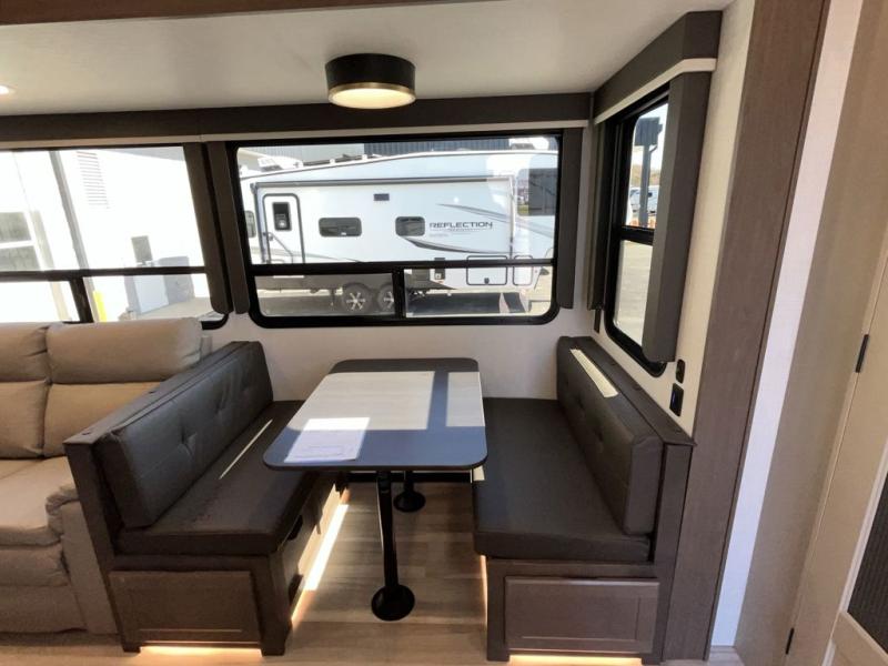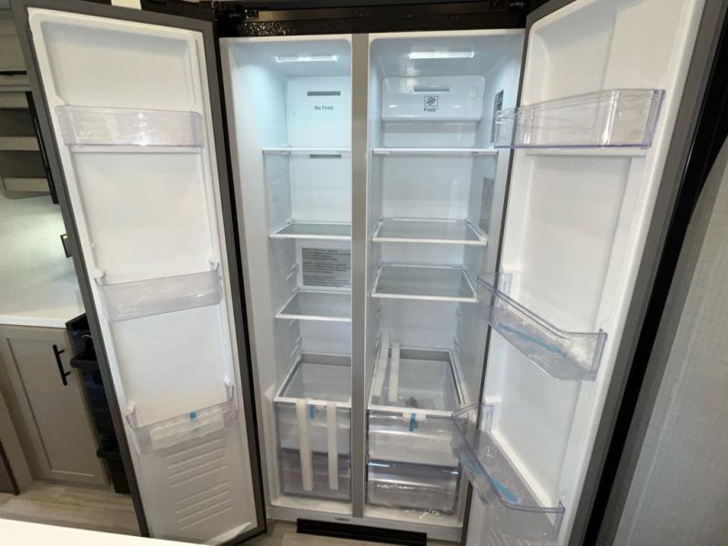 You'll want to pounce on this Cougar fifth wheel because of its amazing sleeping accommodations! Not only is there a master suite up front, but there is also a bedroom suite in the back. This rear suite has a 54" x 74" bed with a 54" x 74" loft bed above it. Plus, the second exterior entry door leads into the half bathroom, so you can exit the fifth wheel from this rear bedroom too. When you do exit, you'll be right next to the outdoor kitchen prep area with a mini refrigerator, and two 12' power awnings. A 68" tri-fold sleeper sofa and booth dinette adds more sleeping space, and it also gives you a comfortable place to watch the LED HDTV at night. A kitchen island will be helpful to use while you're cooking, and the 16 cu. ft. 12V refrigerator will hold perishables for the whole week!