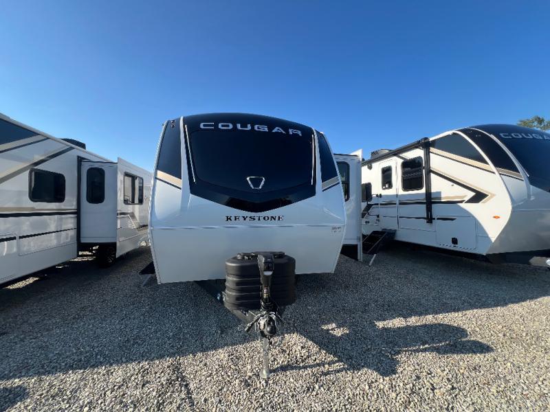 The Keystone Cougar Half-Ton fifth wheel and travel trailers are known as one of America's favorites for a reason! Some of those reasons are the exclusive features that come from Keystone, like the Winegard Air 360+ omni-directional rooftop antenna, the in-floor heating ducts, and the HyperCore composite wall construction with Vixen Fibrogloss high-gloss finish. The Cougar Half-Ton has a Climate Guard protection package with heat-deflecting white sidewalls, two roof attic vents, PEX plumbing and more to enjoy four season camping. Inside, you'll love the dimmable lighting, night roller shades throughout, shower skylight, and bedside USB outlets to keep your electronics charged.