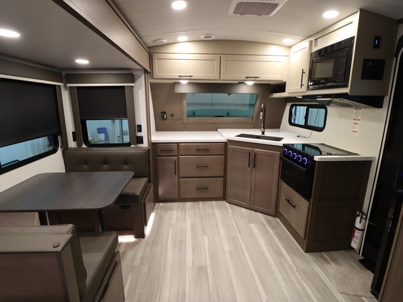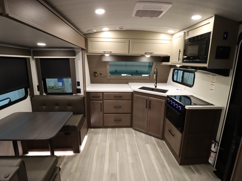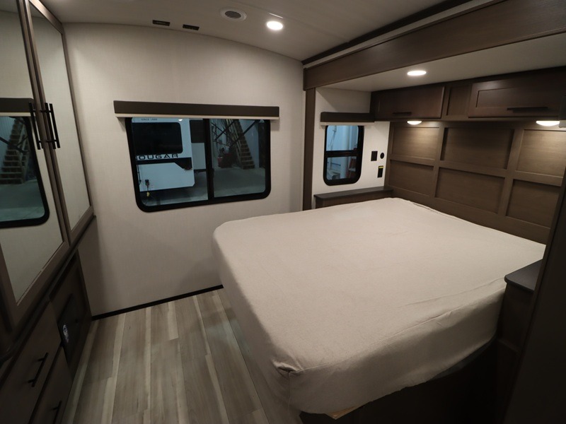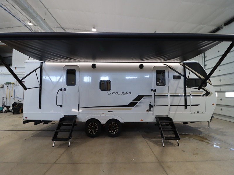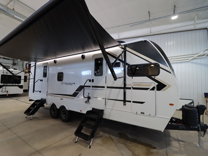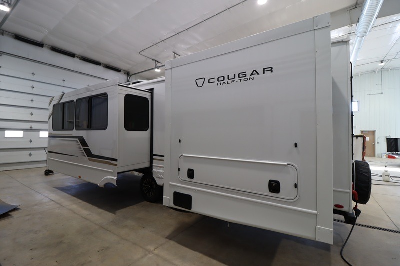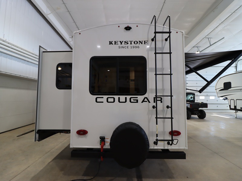 The Keystone Cougar Half-Ton fifth wheel and travel trailers are known as one of America's favorites for a reason! Some of those reasons are the exclusive features that come from Keystone, like the Winegard Air 360+ omni-directional rooftop antenna, the in-floor heating ducts, and the HyperCore composite wall construction with Vixen Fibrogloss high-gloss finish. The Cougar Half-Ton has a Climate Guard protection package with heat-deflecting white sidewalls, two roof attic vents, PEX plumbing and more to enjoy four season camping. Inside, you'll love the dimmable lighting, night roller shades throughout, shower skylight, and bedside USB outlets to keep your electronics charged.